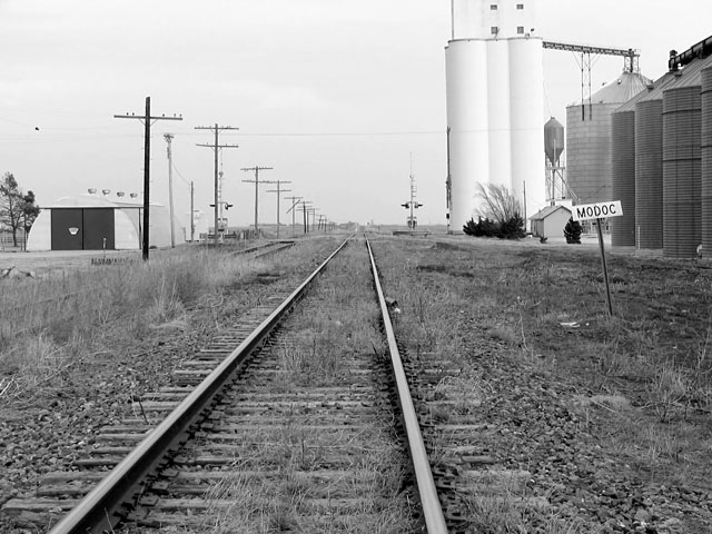 Black and White: Still Life: Modoc, Kansas: 2 streets and a railroad. That's all.