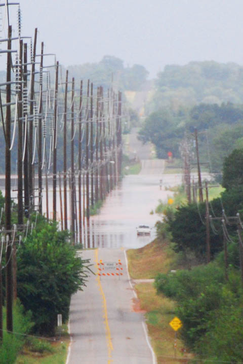 Franklin Road east of our house. This photo was taken with a zoom and cropped, so the perspective is collapsed--the area flooded is actually about 1 mile long.
