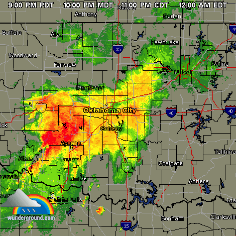At 8:00 AM, the storm was centered over Edmond (north of OKC) and was just reaching the end of its highest-intensity time.
