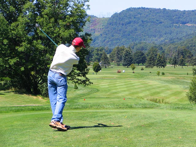Color: Action: Michael on the 16th tee at Delhi College Golf Course.